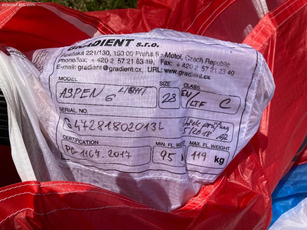 Verkaufe meinen Aspen 6 Light 28 den ich selten geflogen bin.Aufgrund von Gewichtsverlust passe ich jetzt nicht mehr in den Gewichtsbereich und wird deshalb auch verkauft. Der Schirm hat ca 120 Flugstunden drauf.... also noch sehr frisch! :-)