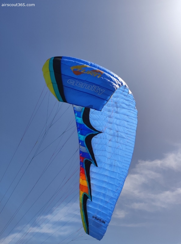 Selling my U Turn Eternity 4 paraglider, Size XS (recommended pilot weight 55–70 kg), serial number fn et xs 335k 6982 color 5. Only two short test flights (~15 min each), like new.