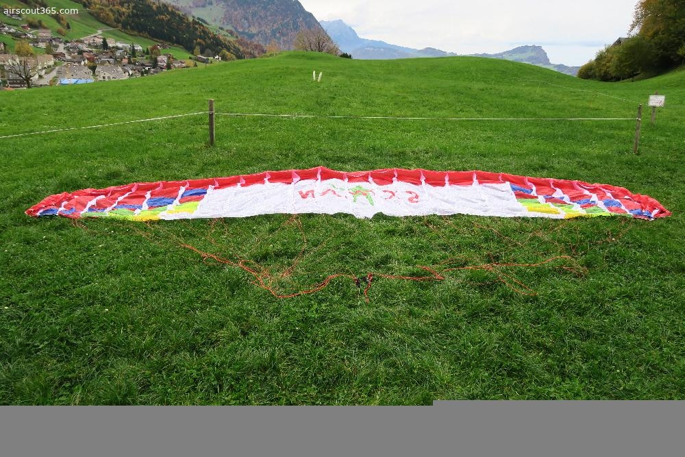 Der Schirm ist ansonsten in gutem Zustand und eignet sich ideal für Hike&Fly oder dynamische Abgleiter.