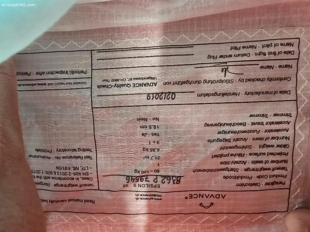 Epsilomn 7 26Schirm hat einen komplett neuen Leinensatz. Das Tuch hat keine Schäden.