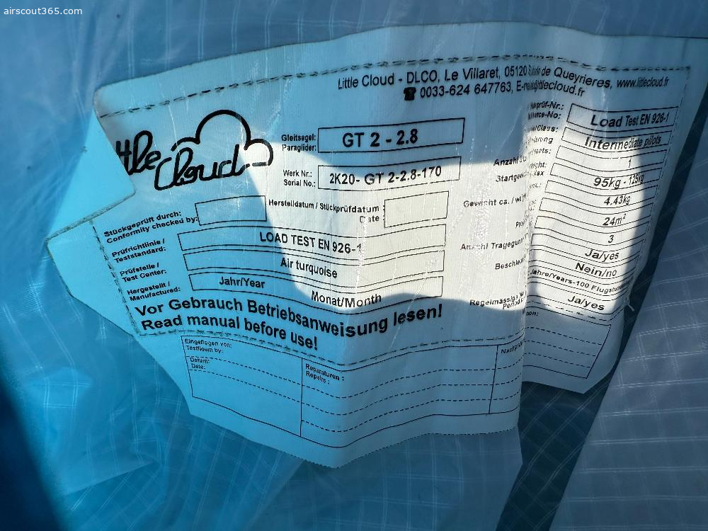 Der Schirm hat nur wenige Stunden drauf. Check bis 02/26 — seit dem letzten Check nur einen Flug gemacht. Checkresultat : Neuwertig . Sehr leichter und spaßiger LOW Level B Schirm. Gewicht liegt bei 4,3 kg.Könnte auch mit Tragegurten mit Trimmsystem erworben werden. Ist auch mit den Little Cloud Kiteriser kompartibel.