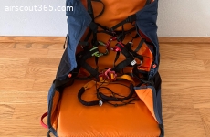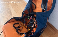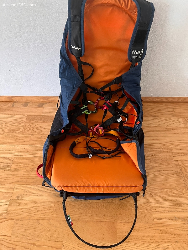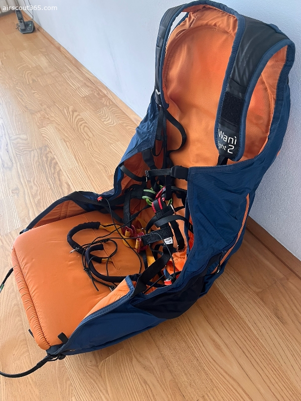 Leichtes Wendegurtzeug mit Sitzbrett und zweistufigem Beschleunigergut für Hike&Fly geeignet
