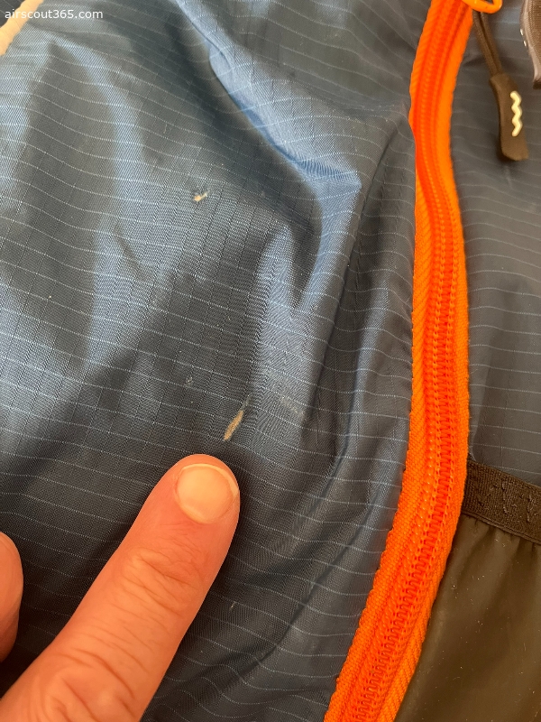 Gebraucht, guter Zustand. Keine Flecken, kein Sand. Zwei kleine Einrisse am Tuch des Rucksackes, diese wurden von innen mit Segelreparaturband verschlossen. Von außen minimal sichtbar (Foto)