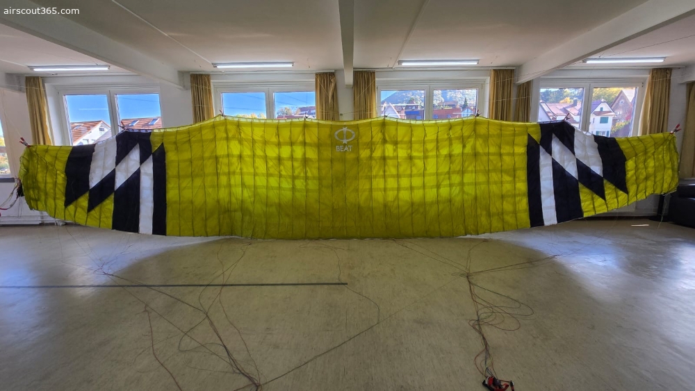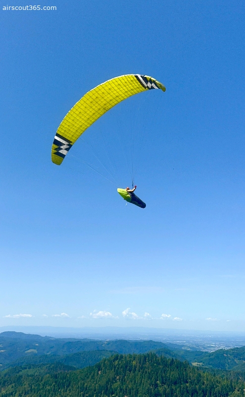 Geiler Mid-B Schirm - super brav und schönes Handling, vor allem auch im beschleunigten Flug mit der BC-Steuerung der R07-Tragegurte.