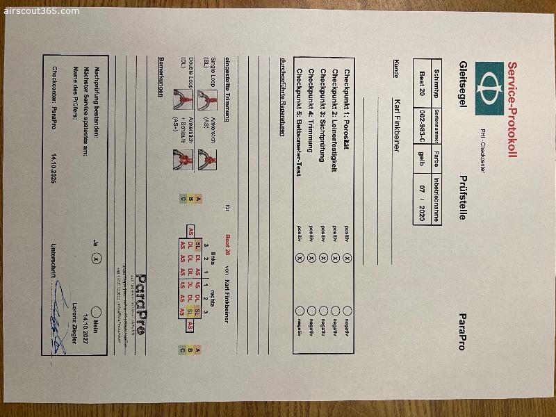 Check und Trimm wurde am 14.10.2025 von ParaPro durchgeführt.