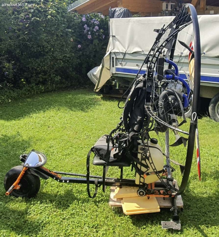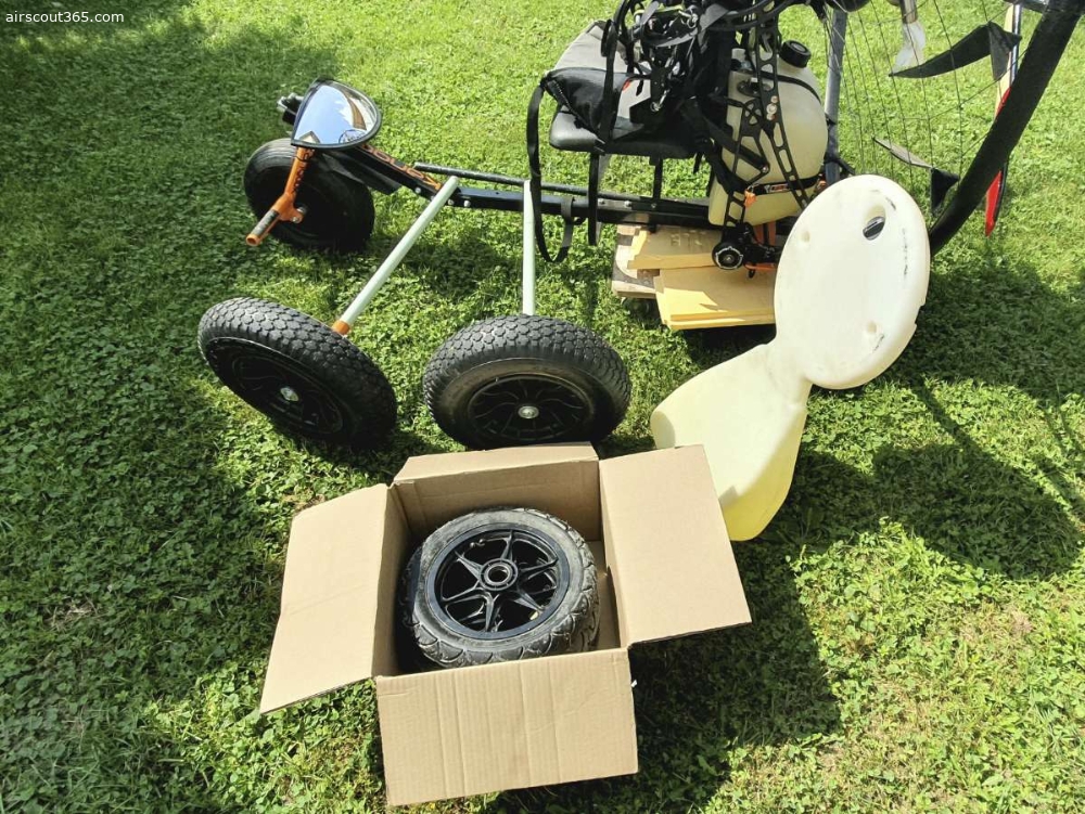 Trike ist von Kangook, um einen Spiegel erweitert und auf größere Reifen umgebaut (Originalreifen sind dabei).