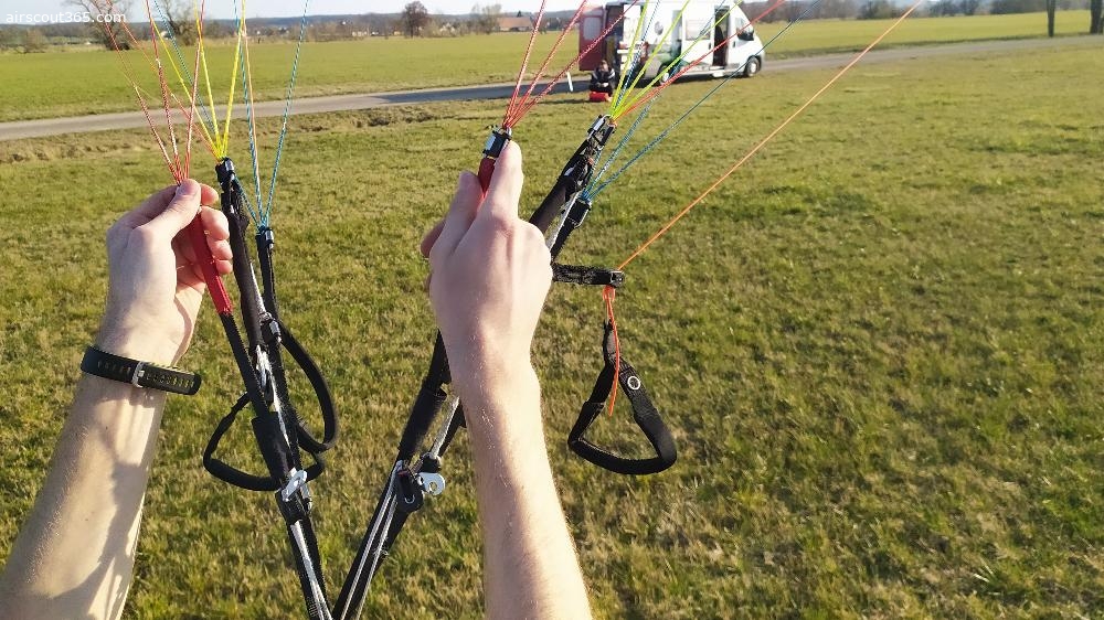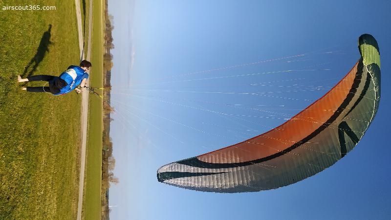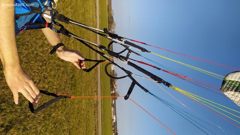 Der Schirm ist richtig schnell, hat eine tolle Gleitleistung - auch bei voll getretenem Beschleunigungs-/Trimsystem. Die C-Steerings lassen sich wunderbar feinfühlig zur Richtungs-Korrektur nutzen.