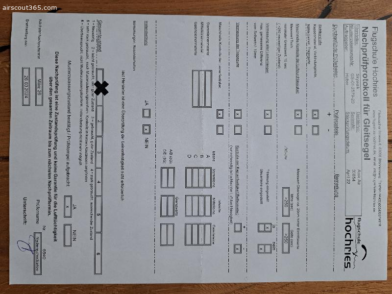 Ich biete hier meinen Skywalk Arak Air in Größe M (zugelassenes Gewicht 85-110kg, empfohlen 90-105kg).Die Prüfung ist jetzt fällig aber das Tuch hatte vor zwei Jahren super Werte und ich bin seitdem nicht mehr geflogen.