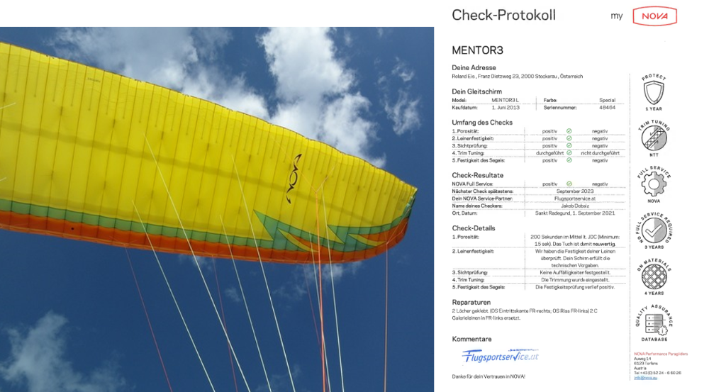 -Geitschirm NOVA Mentor 3L, sundance, Baujahr 2013, Prüfprotokoll vorhanden, gültig bis September 2023