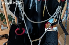 Ideal für gewichtsorientierte Hike & Fly Piloten: Das komplette System (Gurtzeug + Airbag + Beschleuniger) wiegt flugfertig nur 685g (nachgewogen).Details: