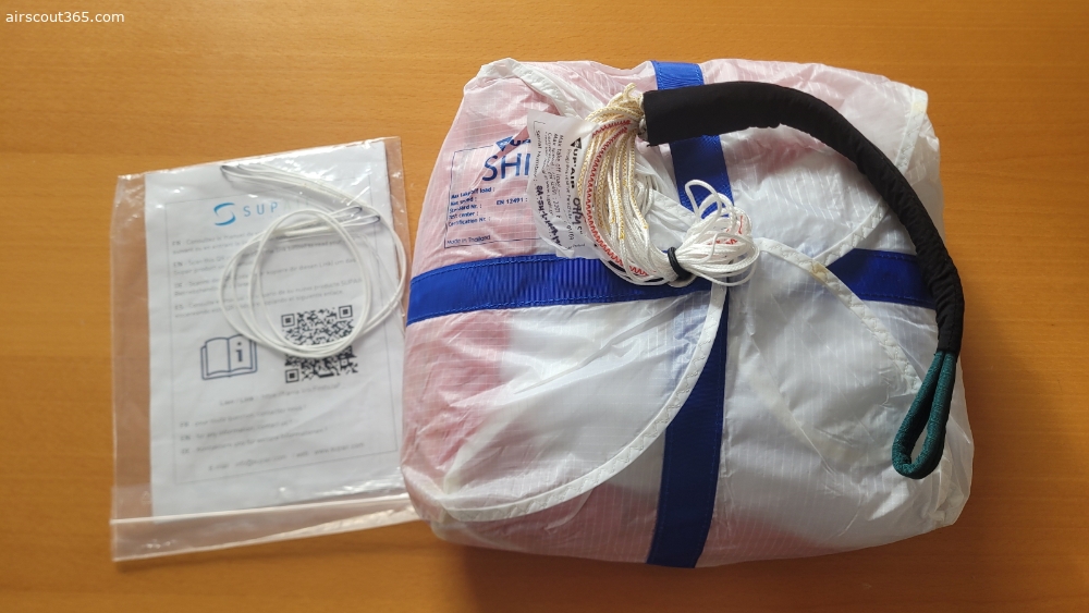 Der Retter war in meinem Drittgurtzeug Supair Strike 2 eingebaut, dass ich nur 2 mal geflogen bin und ist daher in einem neuwertigem Zustand.