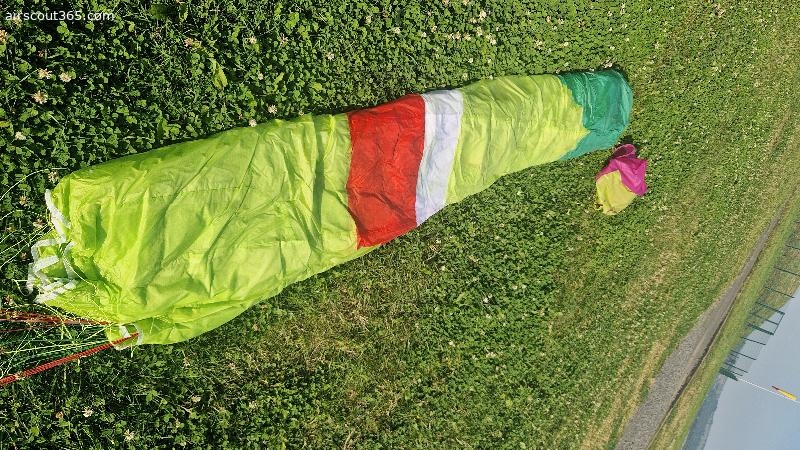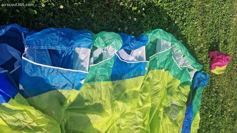 Der Schirm wurde nur für Training und Wettbewerb geflogen,als 2.Schirm. Kein Sand, kein Acro