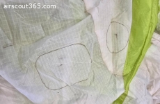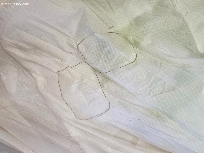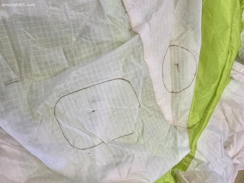 Einige kleine Löcher, welche aber professionell getapt wurden. Inkl. Advance Packsack